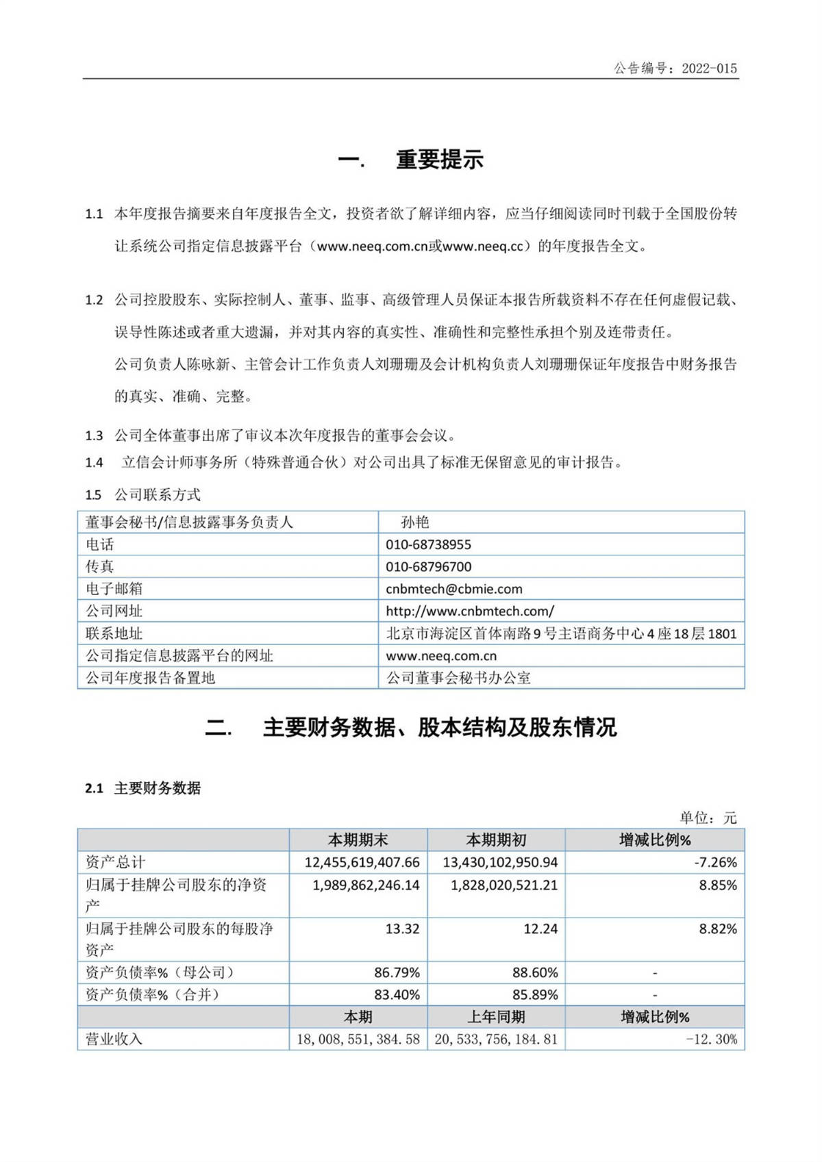 中建信息2021年年度報(bào)告摘要