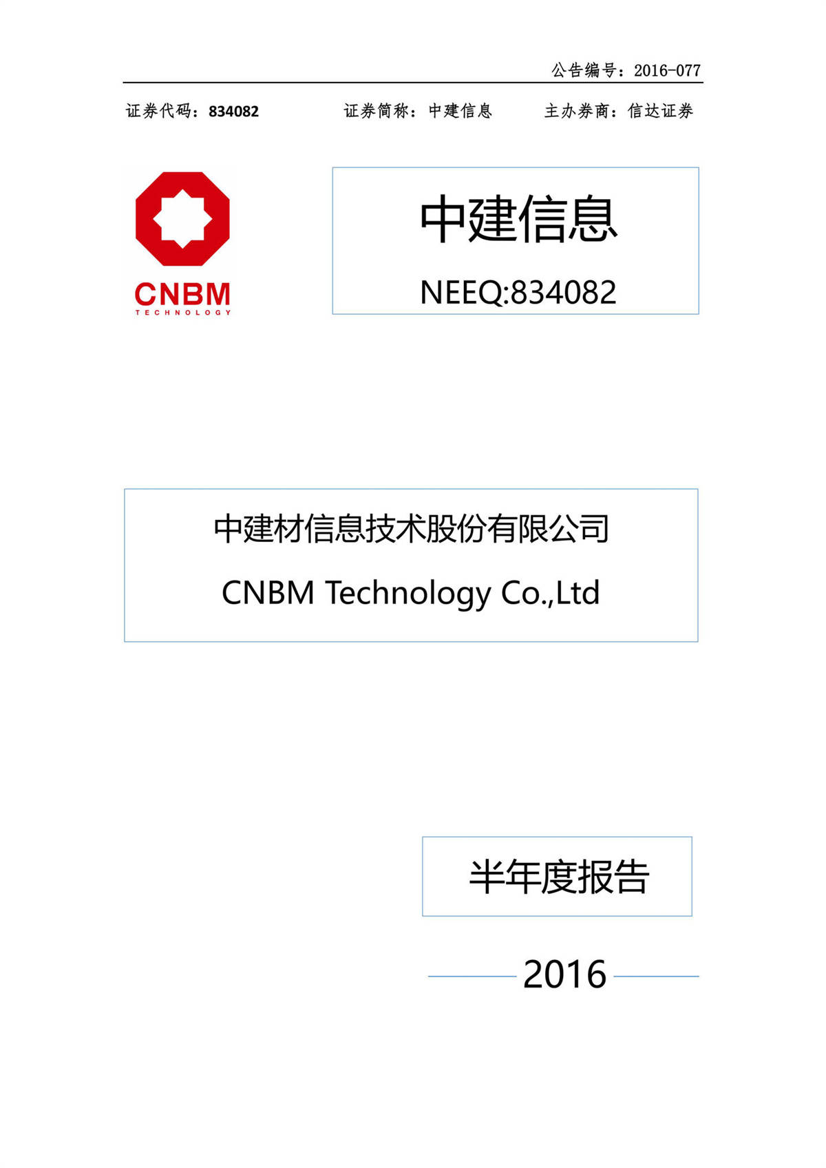 中建信息2016年半年度報(bào)告